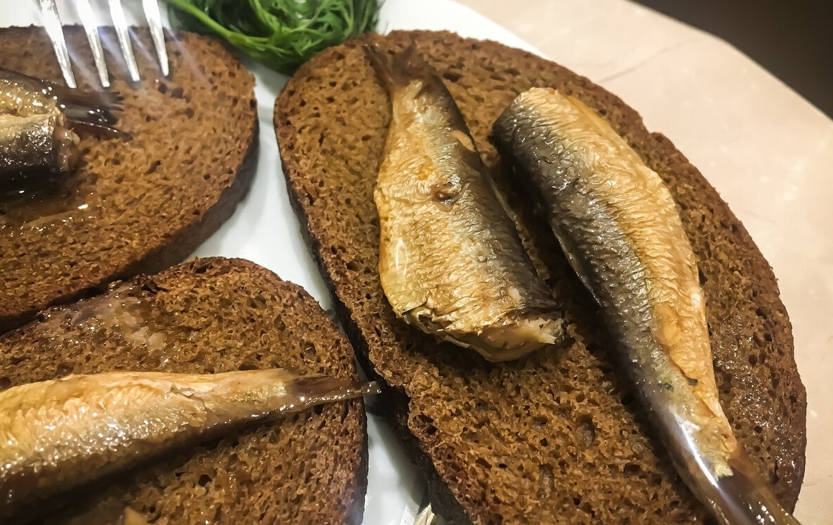 3. Затем выложите несколько шпрот на каждую порцию хлеба.