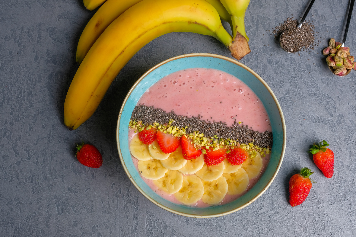 Сегодня представляем вам восхитительный вариант летнего завтрака, который легко приготовить и который порадует своим вкусом и цветом. Смузи боул с домашним йогуртом, свежими фруктами и полезными семенами чиа станет отличным стартом вашего дня. Хрустящие фисташки добавят оригинальности и текстуры, пишет канал.