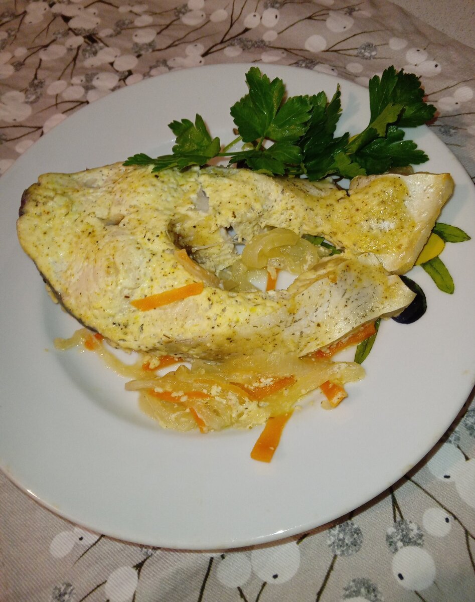 3. Получившейся смесью смазать стейки толстолобика и выкладывать их поверх подготовленных овощей.