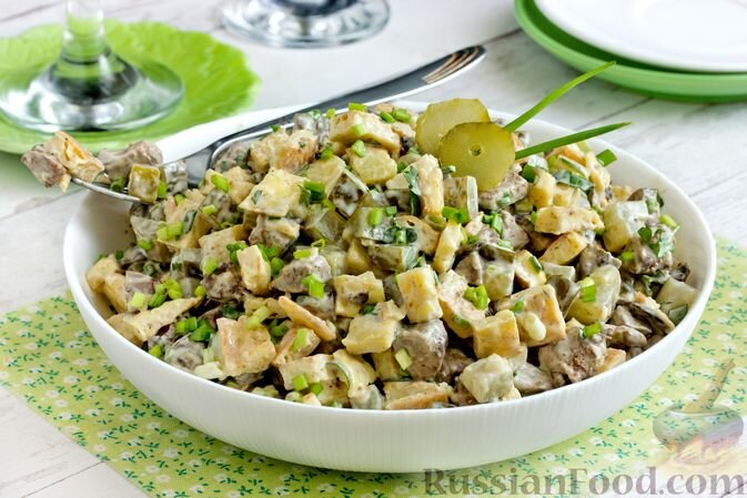 - Салат с куриной печенью - это не просто блюдо, а настоящий гастрономический эксперимент. В его составе - куриная печень, маринованные огурцы и яично-сырные блинчики, создающие уникальную текстуру и вкус.