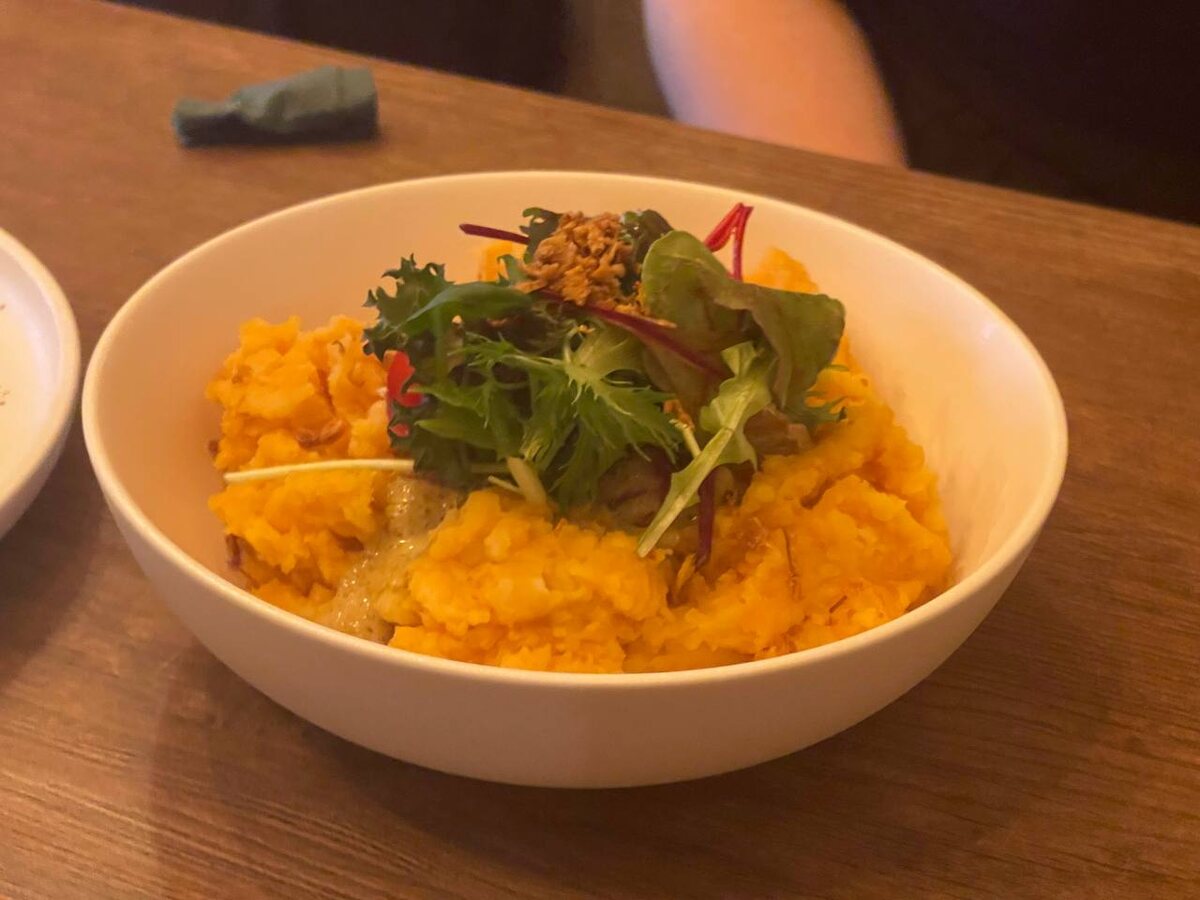 Одним из самых необычных блюд, представленных в меню, стало пюре том ям, дополненное ананасом, апельсином и индейкой, приготовленной в сливочном соусе карри. Этот кулинарный шедевр восхищает разнообразием вкусов и оригинальным сочетанием ингредиентов, что делает его настоящей находкой для любителей гастрономических приключений.