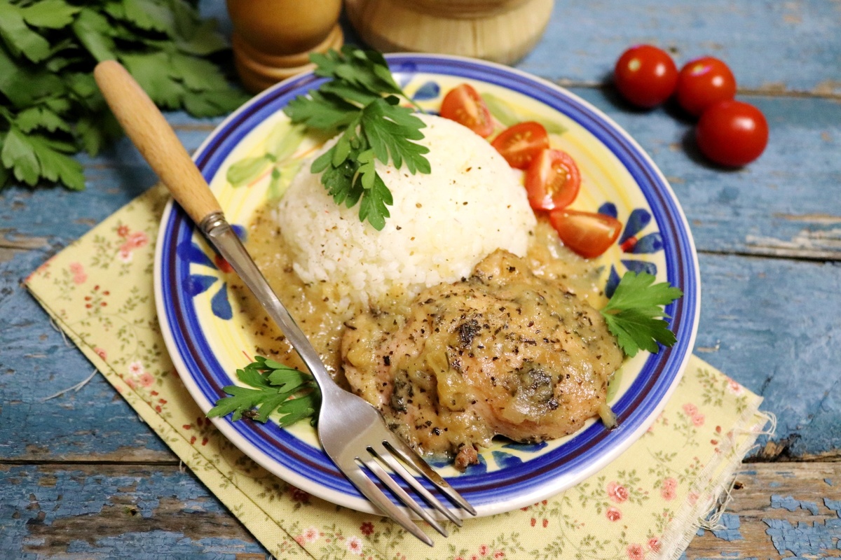 Для этого рецепта подойдут различные части курицы – от филе до мяса на косточках. В данном случае используются куриные бедра без кожи и костей, которые предварительно приправляются специями, солью и перцем, а затем обжариваются на растительном масле до румяной корочки.
