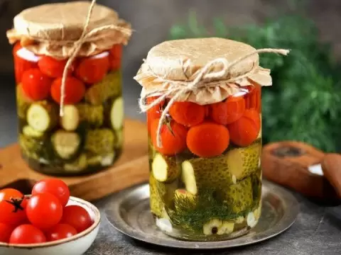 - Ассорти из огурцов и помидоров: отличное решение для любителей закусок. Эта банка будет ярким акцентом на любом столе.