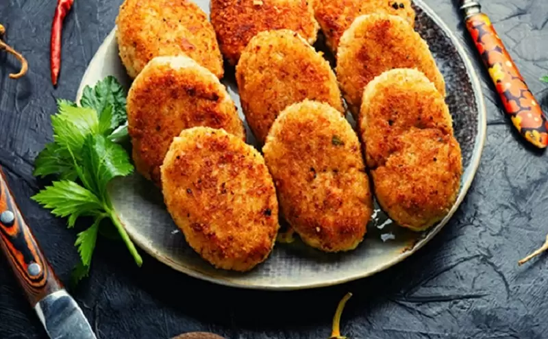 Здесь ключевой момент — использование овсяных хлопьев, которые не только связывают фарш, но и удерживают влагу внутри, не перебивая вкус куриного мяса. После того как хлопья набухнут в молоке, их следует смешать с куриным фаршем. В результате получается отличная текстура, которая позволяет фаршу сохранять форму. Важно нарезать сливочное масло маленькими кубиками и помещать в центр каждой котлеты для создания изысканного "сюрприза".