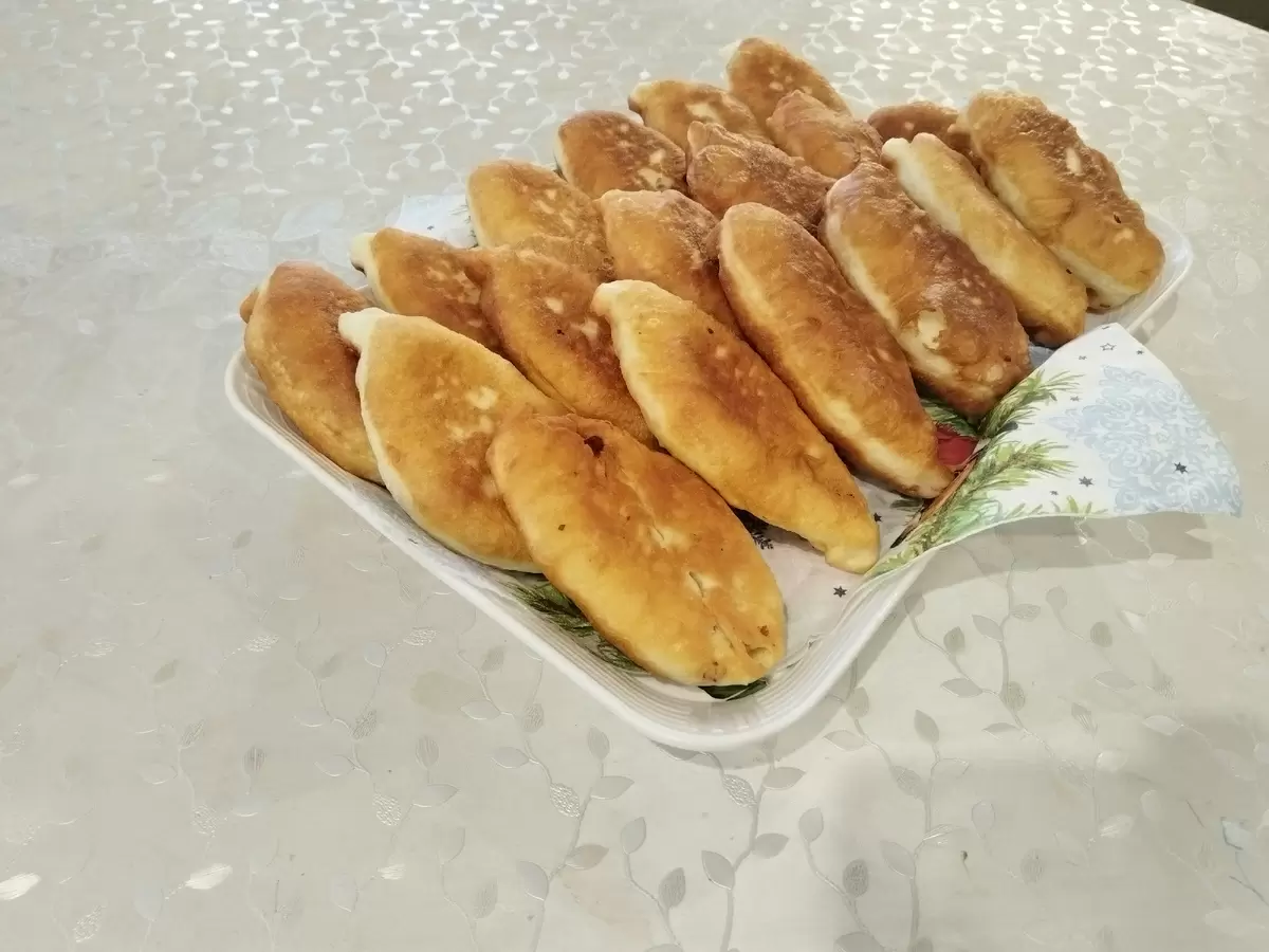 Приготовление теста: В теплое молоко добавьте сахар и дрожжи, дайте настояться 10 минут. Затем растопите сливочное масло и смешайте его с солью и просеянной мукой в молочной смеси. Замесите тесто до эластичности.Подъем теста: Накройте тесто полотенцем и оставьте в теплом месте на 1,5 часа. Обмянивайте тесто и дайте ему подняться еще раз.Приготовление начинки: Лук очистите и измельчите с помощью блендера. Смешайте его с мясным фаршем, добавьте соль, перец и холодную воду. Хорошо перемешайте.Формирование пирожков: Разделите тесто на 13–14 частей. Каждую раскатайте в круг, добавьте столовую ложку начинки и заверните в пирожок.Жарка: Разогрейте масло в глубокой сковороде. Проверьте его готовность, опустив кусочек хлеба — если вокруг появляются пузырьки, можно жарить. Приплюсните пирожки и обжаривайте их партиями до золотистой корочки с обеих сторон.Подача: Выложите готовые пирожки на бумажное полотенце, чтобы избавиться от излишков жира. Переложите на тарелку и подавайте горячими.Совет: Для большей сочности в начинку можно добавить измельченную свежую зелень.