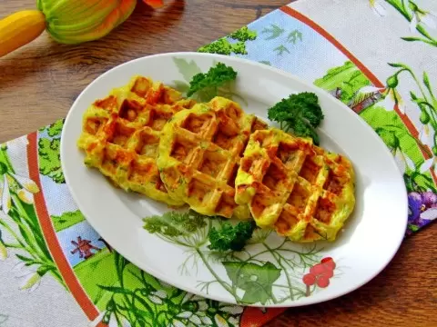 Это блюдо отлично подходит как в горячем, так и в холодном виде, особенно с добавлением сметаны. К тому же, если вафельница отсутствует, можно обжарить тесто на сковороде, получив великолепные кабачковые оладьи. Приятного аппетита!
