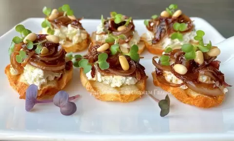 Основным акцентом в этой закуске является луковое чатни. Для его приготовления понадобятся сладкие сорта лука, например, ялтинский. Вот как его можно сделать: