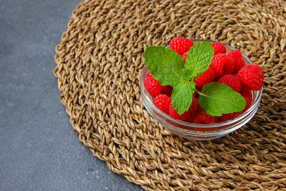 - Полезные свойства: Малина — богатый источник витамина C и салициловой кислоты, способствует борьбе с простудными заболеваниями. Мята не только успокаивает, но и благоприятно влияет на пищеварение.
