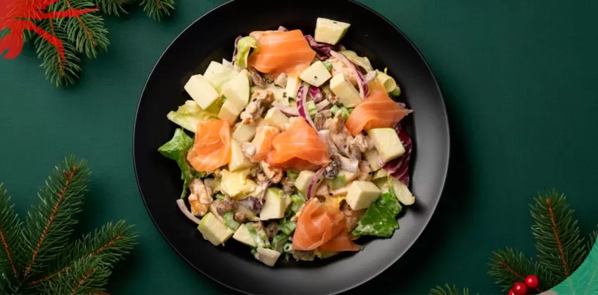 Ваш уникальный салат с лососем и яблоком готов к подаче. Порадуйте себя и своих близких этим взрывом свежести и вкуса на вашей тарелке!