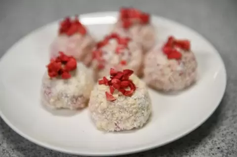 Подготовленный десерт станет настоящим украшением любого стола и не оставит равнодушными даже самых требовательных гурманов. Легкий сладкий вкус клубники, нежная текстура белого шоколада и аромат кокоса сделают это лакомство незабываемым.
