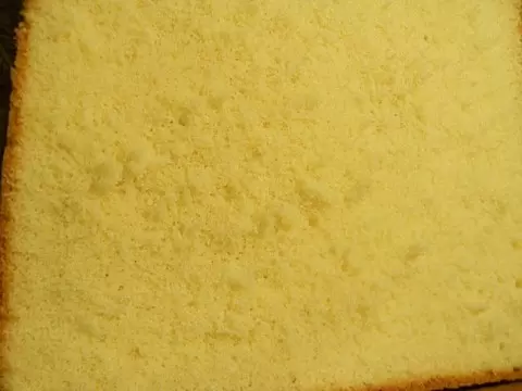 После выпекания остудить бисквит в форме, а затем переложить на решетку. Завернуть в пленку и оставить в холодильнике на сутки, чтобы он пропитался.