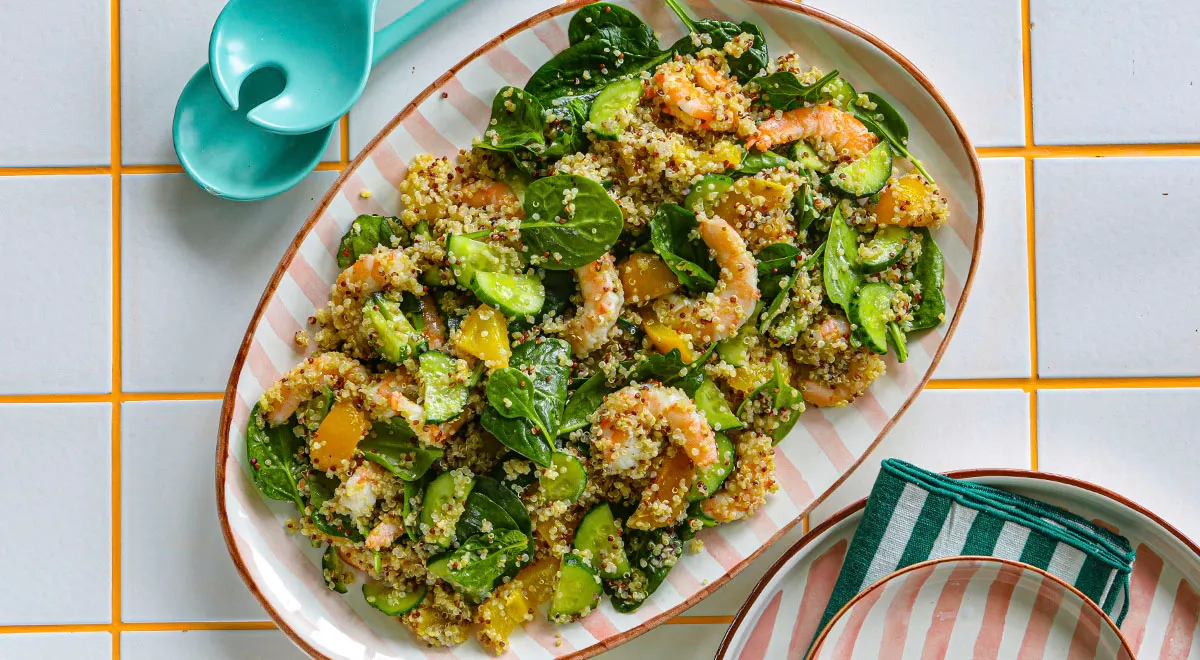 Экзотический тёплый салат с киноа и креветками: быстро и вкусно
