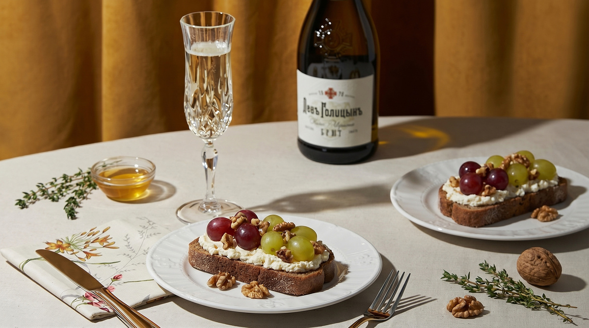 Эти закуски отлично подходят для дружеских встреч, изящно смотрятся на столе и не требуют сложных сервировок. Не важно, выбрали ли вы строгий брют или нежное полусладкое — правильно подобранные ингредиенты способны превратить дегустацию бокала игристого в настоящий феерический гастрономический праздник в духе «Левъ Голицынъ».