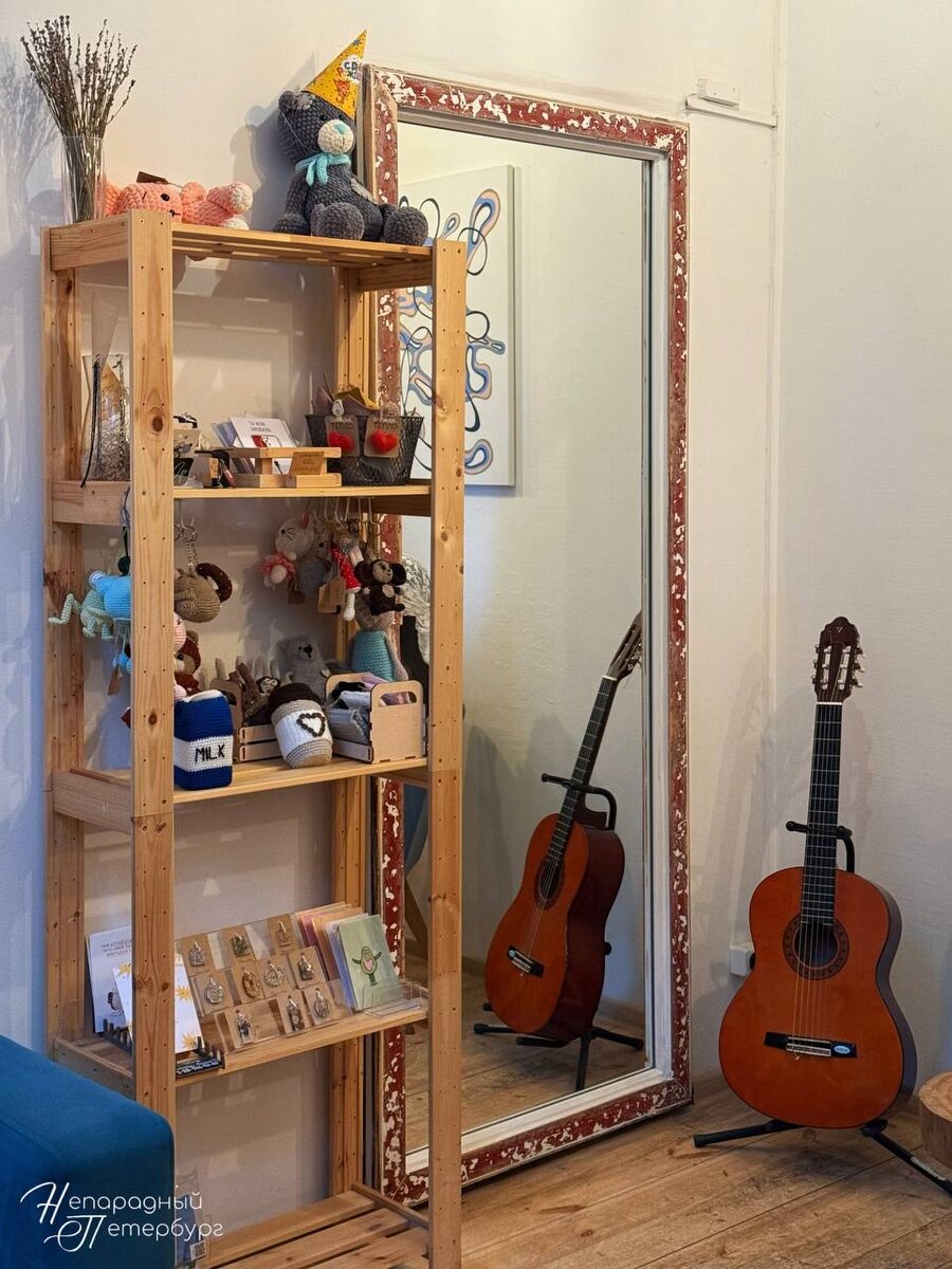 На первом этаже расположены уютные уголки, где можно заказать ароматный кофе и разнообразные блюда. Однако часть магии скрыта на втором этаже, где под мансардными окнами создается идеальное место для общения и отдыха. Здесь находятся виниловый проигрыватель и коллекция пластинок для настоящих музыкальных гурманов.