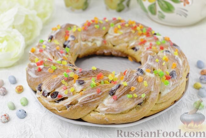 - Творожный венок — мягкий и воздушный, он украсит любой стол. Этот десерт из дрожжевого теста сочетает в себе радушие и традиции.