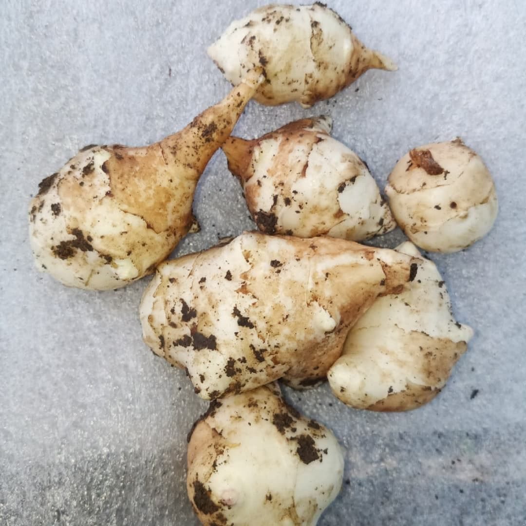 Недавно на одном из местных рынков привлекло внимание корзиночка с корнеплодами, напоминающими одновременно имбирь и картошку. Интригованный, покупатель подошёл к продавцу — пожилой бабушке — чтобы узнать, что же это за овощи.