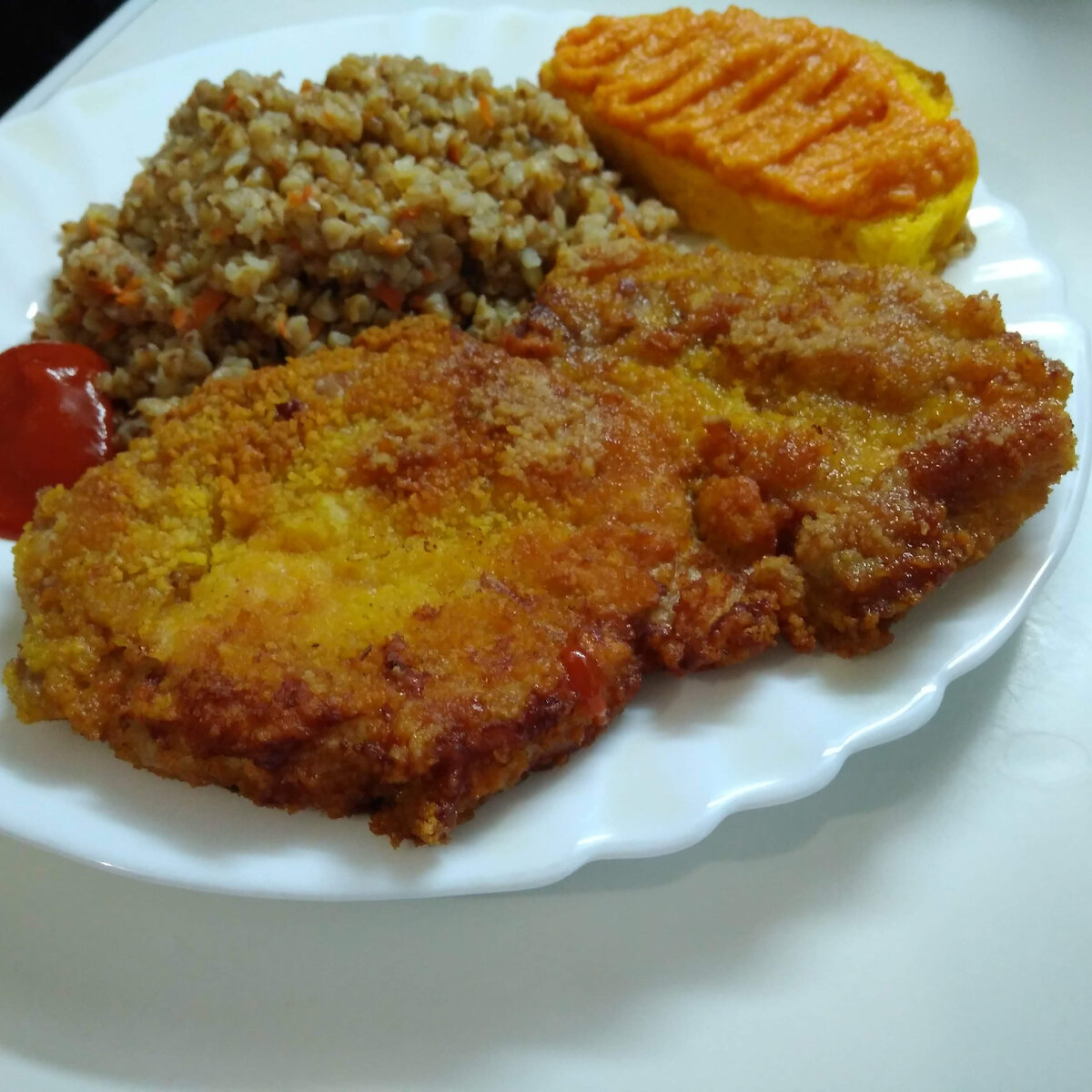 Шницель можно подавать с любым гарниром на ваш вкус! А если требуется разогреть, лучше воспользоваться духовкой, чтобы вернуть ему хрустящую корочку.