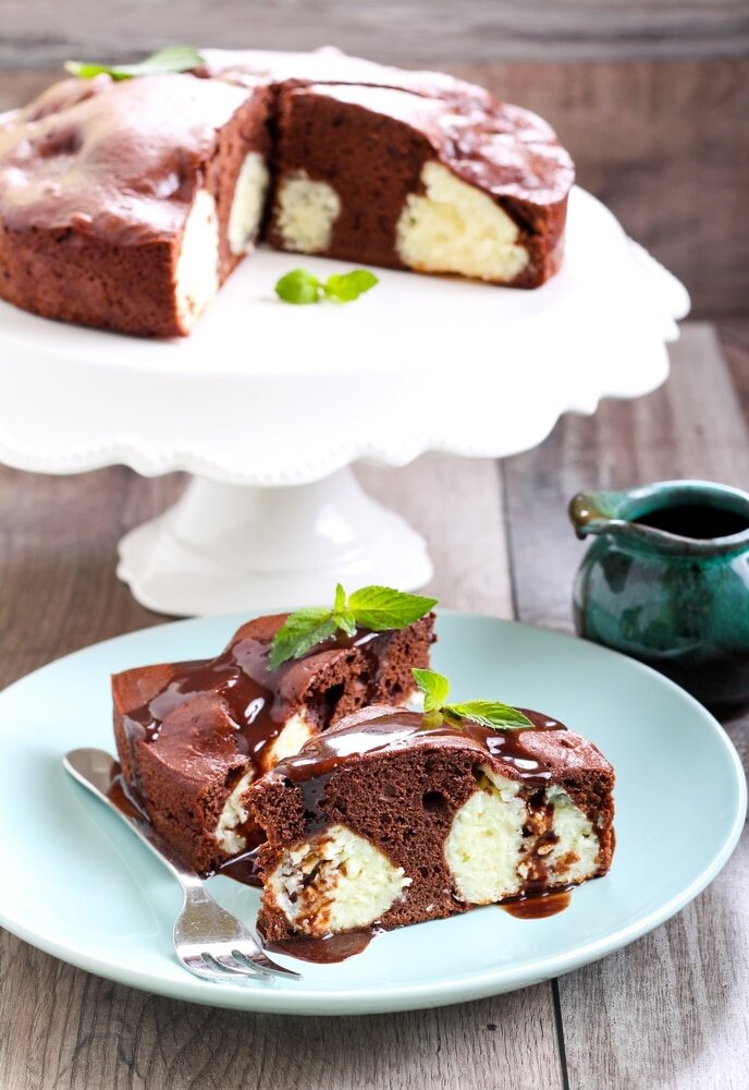 Выпекание: Поставить форму в заранее разогретую до 180°C духовку и выпекать около 40 минут. По истечении времени выньте пирог и подавайте его к столу.