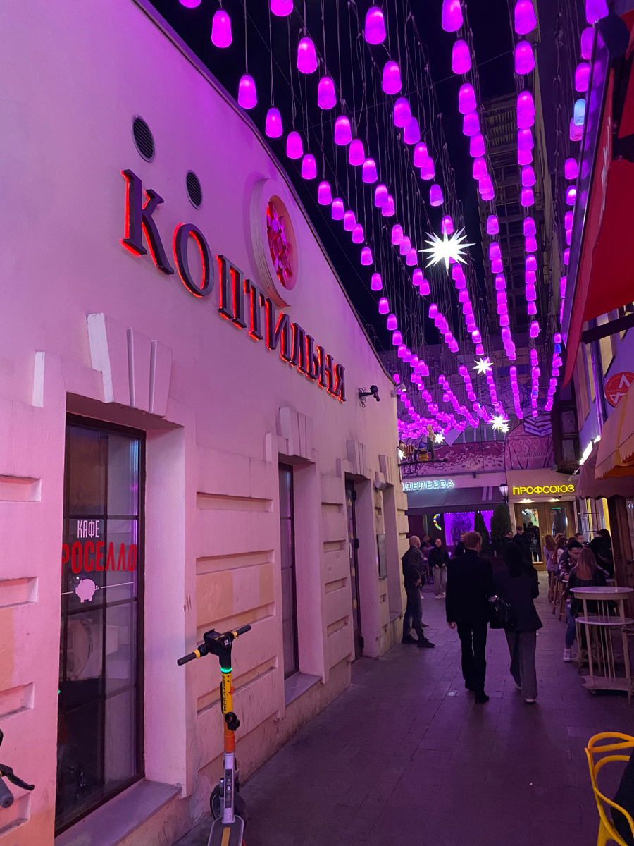 На первом этаже находятся небольшие квадратные столики, адаптируемые под количество гостей. Каждый элемент интерьера, вплоть до лестницы с подсветкой, продуман до мелочей, однако туалет унисекс вызывает некоторые нарекания из-за тесноты.
