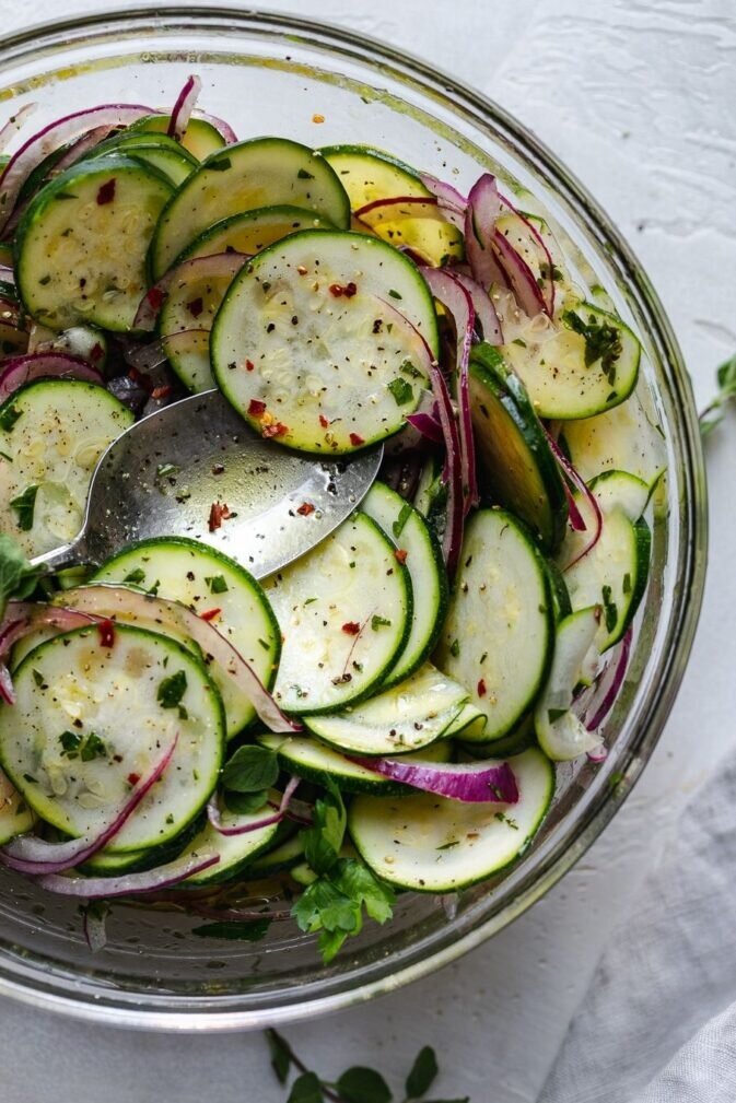 Кабачки не только вкусные, но и универсальные. Их можно использовать в различных блюдах, и одним из самых легких и освежающих решений является салат из маринованных кабачков. Этот аппетитный вариант отлично сочетает в себе пикантность лука и щепотку специй, делая каждую порцию настоящим кулинарным удовольствием!
