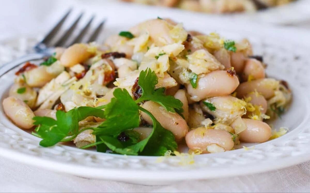 Этот салат не только вкусен, но и полезен: фасоль является источником растительного белка, улучшает работу мозга и помогает в нормализации уровня сахара в крови.