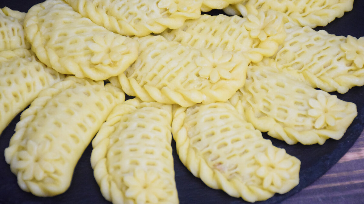 5. Края кружка следует скрепить, закручивая тесто, чтобы получились варенички. Для красоты поверхность можно украсить пинцетом.