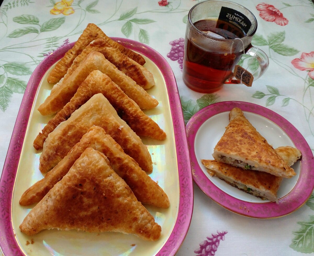 Разогрейте сковороду с растительным маслом и жарьте пирожки на среднем огне до золотистого цвета с обеих сторон, примерно по 7 минут. Готовые пирожки переложить на бумажное полотенце, чтобы избавиться от излишков масла.