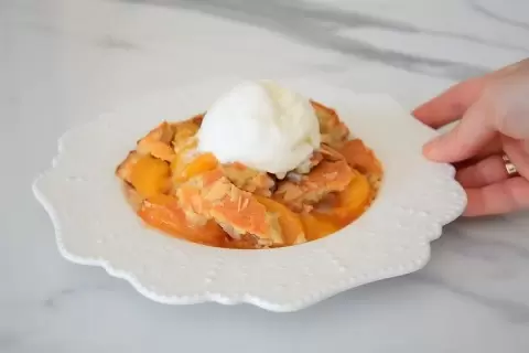 В подготовленную форму выкладываем начинку, сверху ровно распределяем тесто. По желанию, пирог можно украсить миндальными лепестками для дополнительного хруста. Выпекаем в заранее разогретой до 190 градусов духовке около 45-50 минут. Готовое лакомство советуют подавать теплым, с шариком мороженого — это сочетание непременно станет хитом на любом столе!