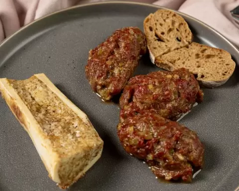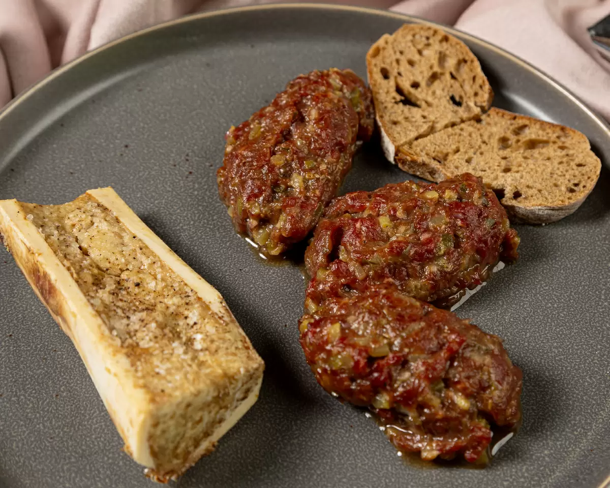 Костный мозг, обладая богатым вкусом, наполняет каждое блюдо насыщенным умами, а в сочетании с холодным тар-таром создает удивительный контраст текстур и температур. Причиной популярности этого блюда является не только его вкус, но и уникальная текстура мяса, которая распадается во рту, благодаря тщательной нарезке. Комбинация соевого соуса, каперсов и горчицы создает идеальный баланс между соленым, кислым и легкой пикантностью, что делает это блюдо незабываемым.