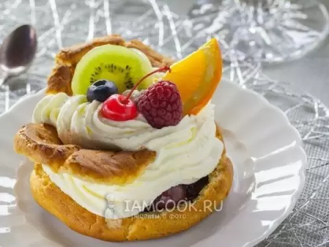 Совершенные эклеры с фруктами и взбитыми сливками для домашнего чаепития