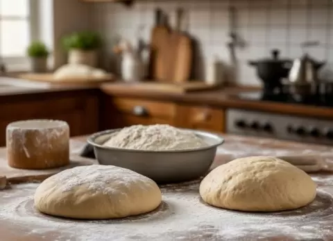 - Манка: Чтобы тесто стало особенно пышным, добавление 1-2 столовых ложек манки на 500 г муки сделает его легким и воздушным. Манка поглощает лишнюю влагу, придавая тесту нужную текстуру.