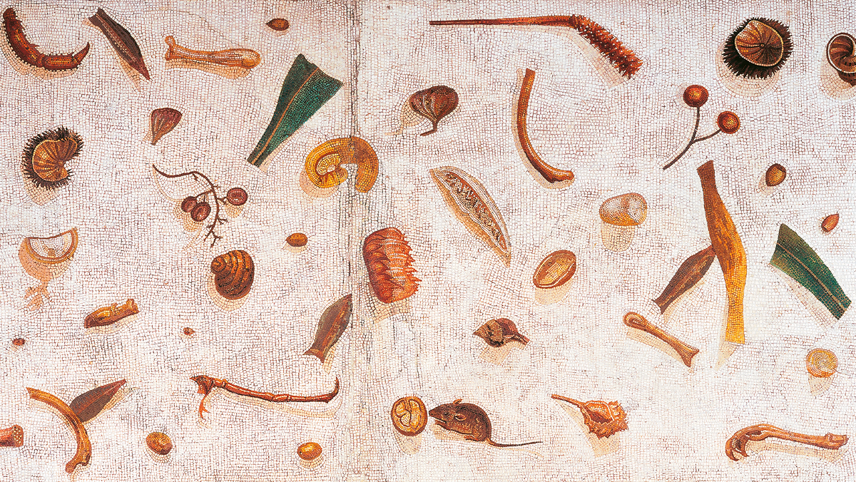 Древняя мозаика под названием «Неприбранный пол», выполненная во II веке нашей эры, открывает перед исследователями уникальный взгляд на привычки аристократии Рима.